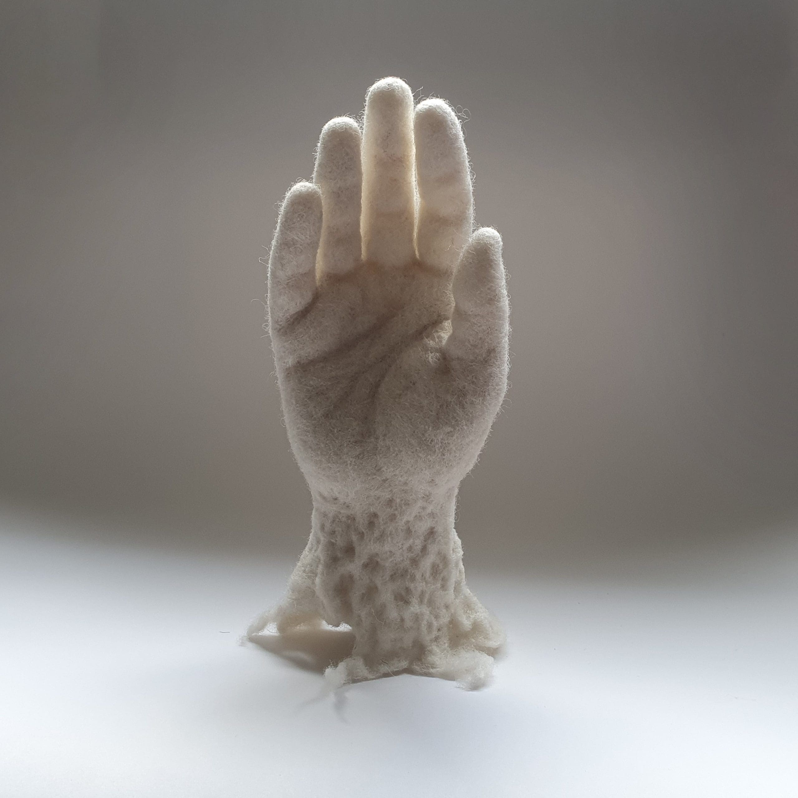 It can feel like the wool has a mind of its own sometimes. I like to think of sculpting as a collaboration with the fibres, letting the wool guide me to its final form. On a deeper level, felted wool mirrors the importance of human connection, like mycelium threading though soil, unseen yet essential. Individual strands are delicate in isolation, but when entwined with others, they come together to form something beautiful, resilient and strong.
