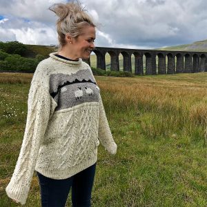 A British made jumper from British sheep, which is what we are all about. It’s like the dry stone walls in the fields around us, they are made from limestone as its local and does the job well. British wool is the same.