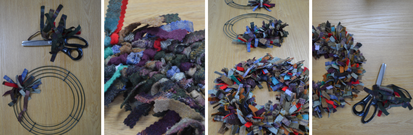 Continue to work your way around the wire wreath, making sure to pack the knots in as closely as possible.