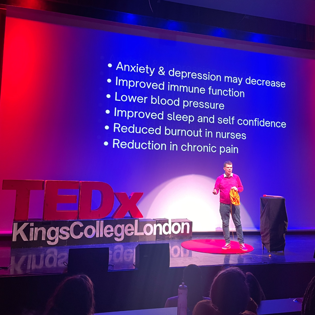James was invited to share his story at TEDx King’s College London, where he explored the idea of knitting as a mindfulness practice, particularly for people who struggle with traditional meditation. Holding knitting needles became his anchor, just as breath serves as an anchor in yoga and mindfulness. He firmly believes, “Hand knitting saved my life.”