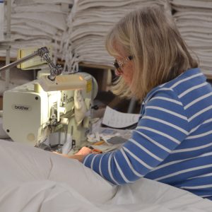 At this point, they were discovered by Monty Don. Who included them in his series ‘My Dream Farm’ in 2009 and the interest generated by this led to a significant increase in production. With more seamstresses and a dedicated building where the range of wool filled soft bedding could be made.