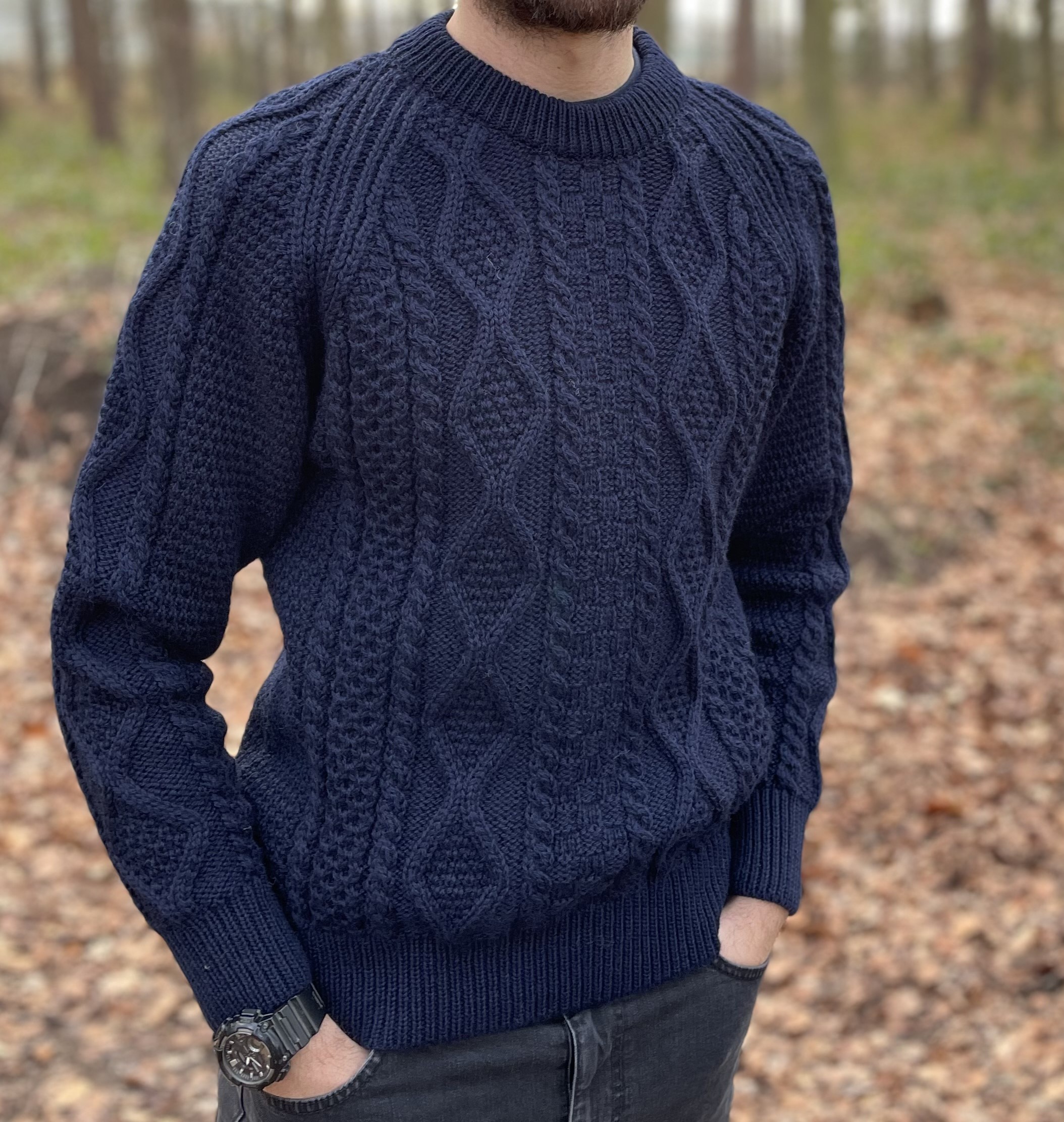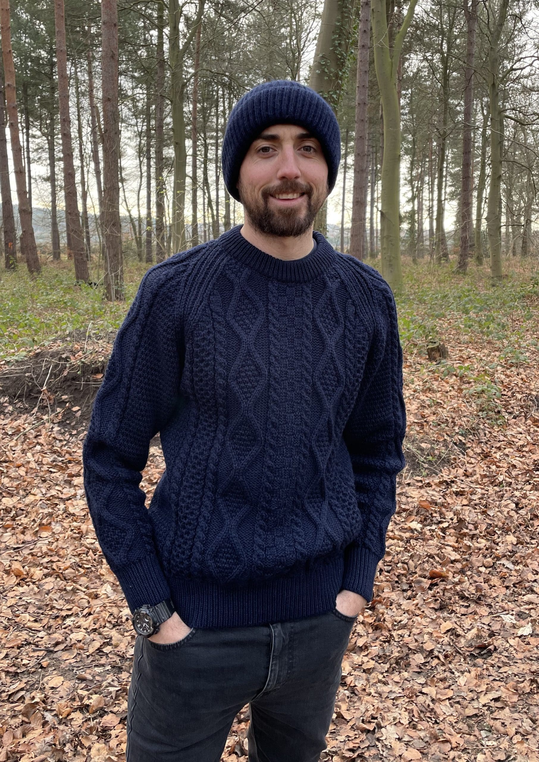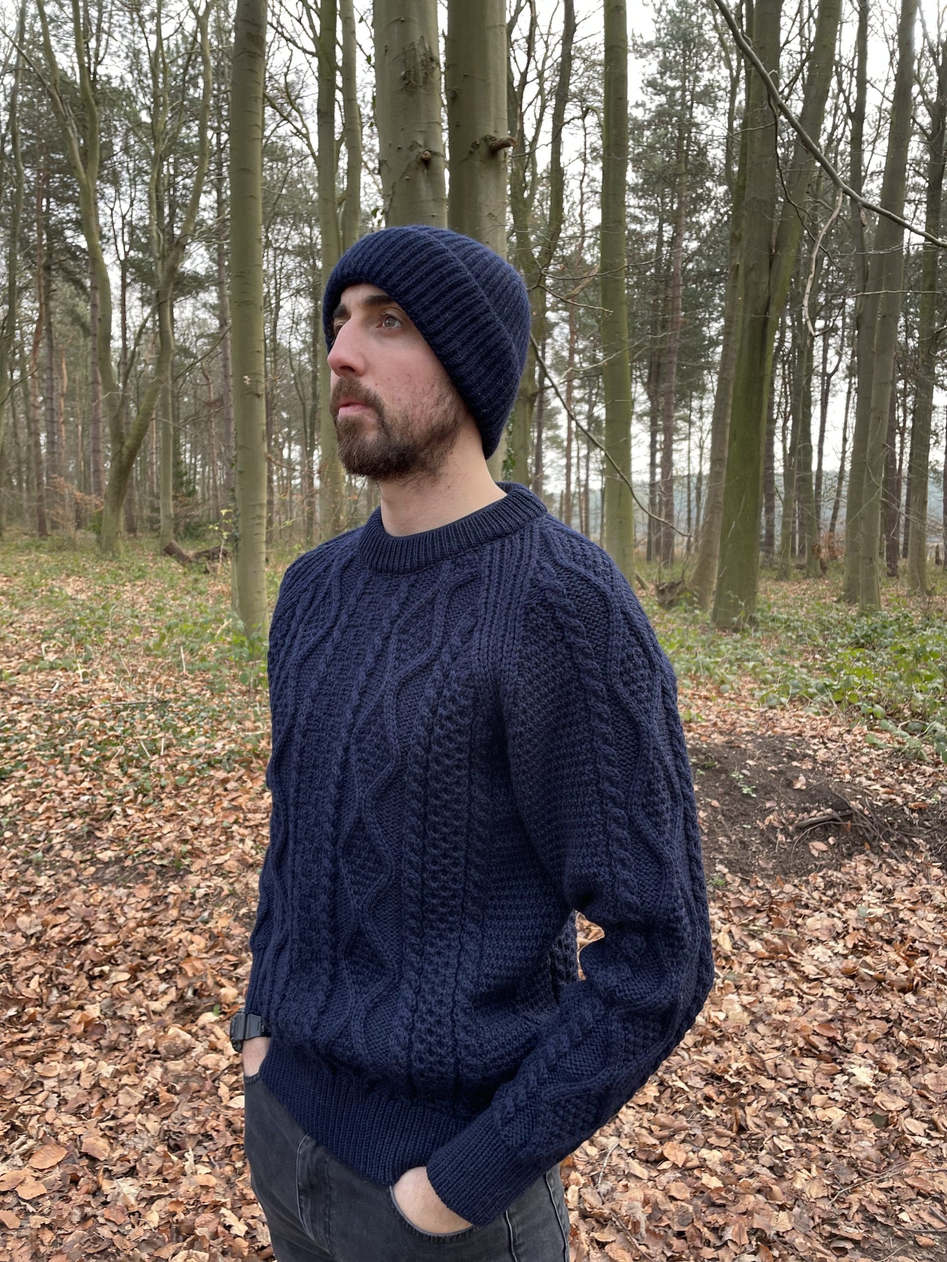 Classic cable knit made from 100% British wool 3ply yarn.