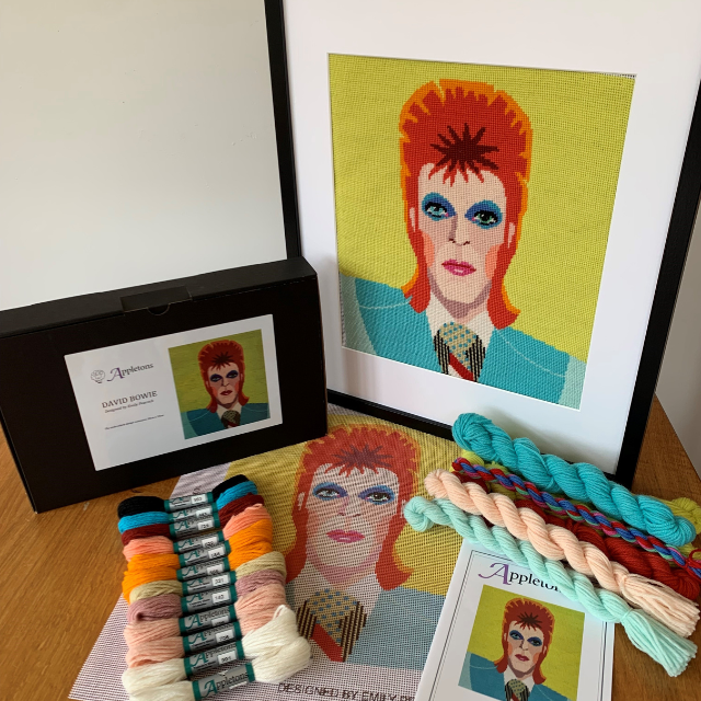 Appletons Wool’s stunning tapestry kit of David Bowie, an absolute icon and one of the most influential musicians of the 20th century is depicted in this fabulous image designed by Emily Peacock.