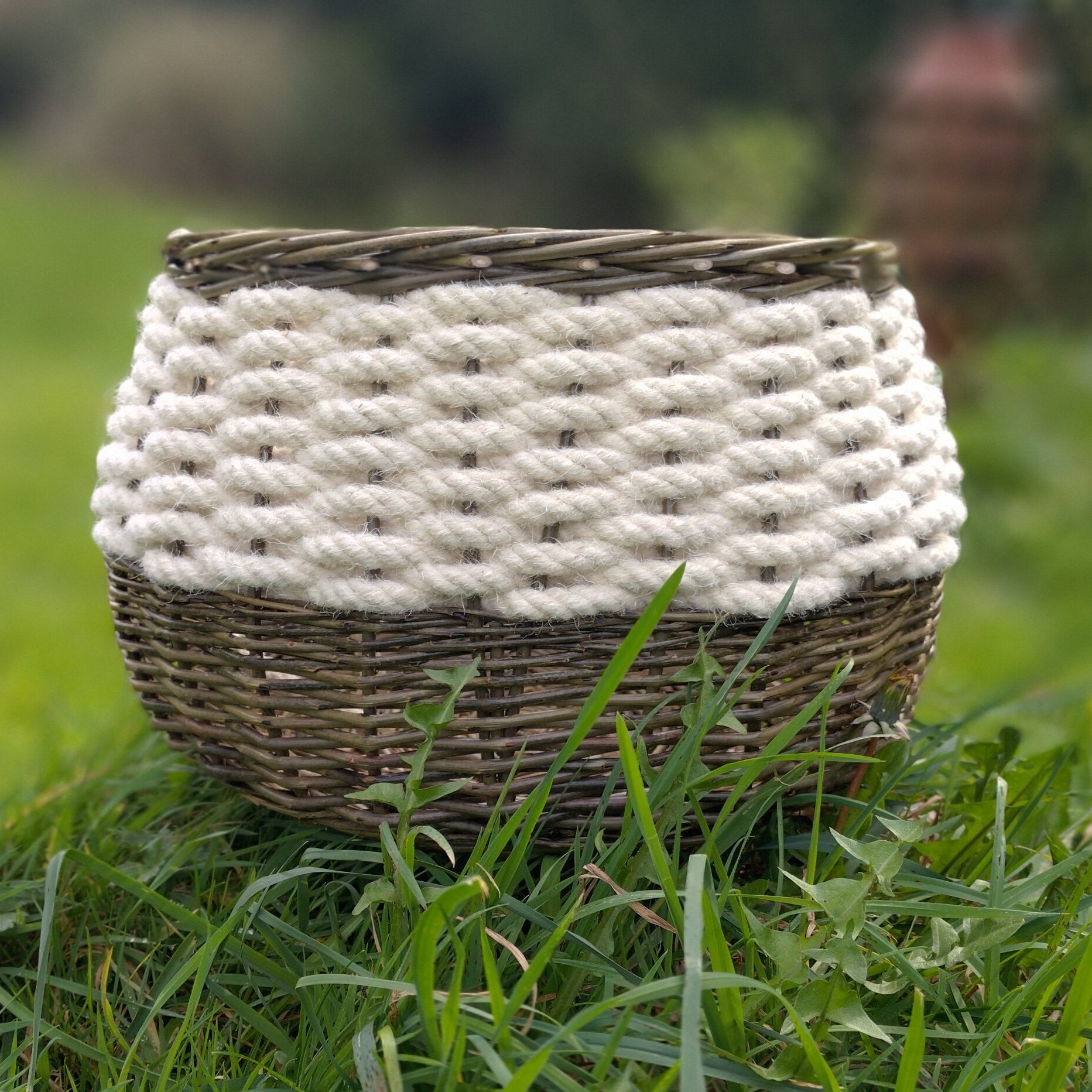 “It’s Not That Deep” is an artisan made, circular storage basket. Woven using traditional techniques from authentic Welsh Mountain Wool rope and British grown willow. By The Woollen Cwtch Company