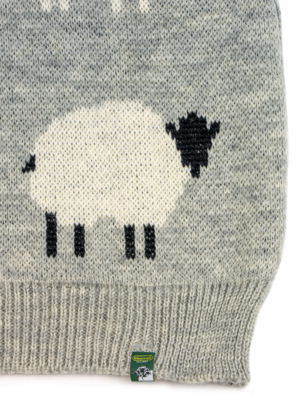 First created in 2021, this Glencroft original sheep design was inspired by repeating pattern jumpers from the 1980s. This modern twist is manufactured in the North of England from 100% British Wool.