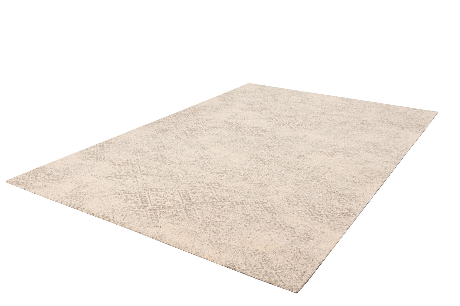 An intricate diamond pattern emerges from behind a delicate cloud-like texture, creating a distressed effect in neutral colours.