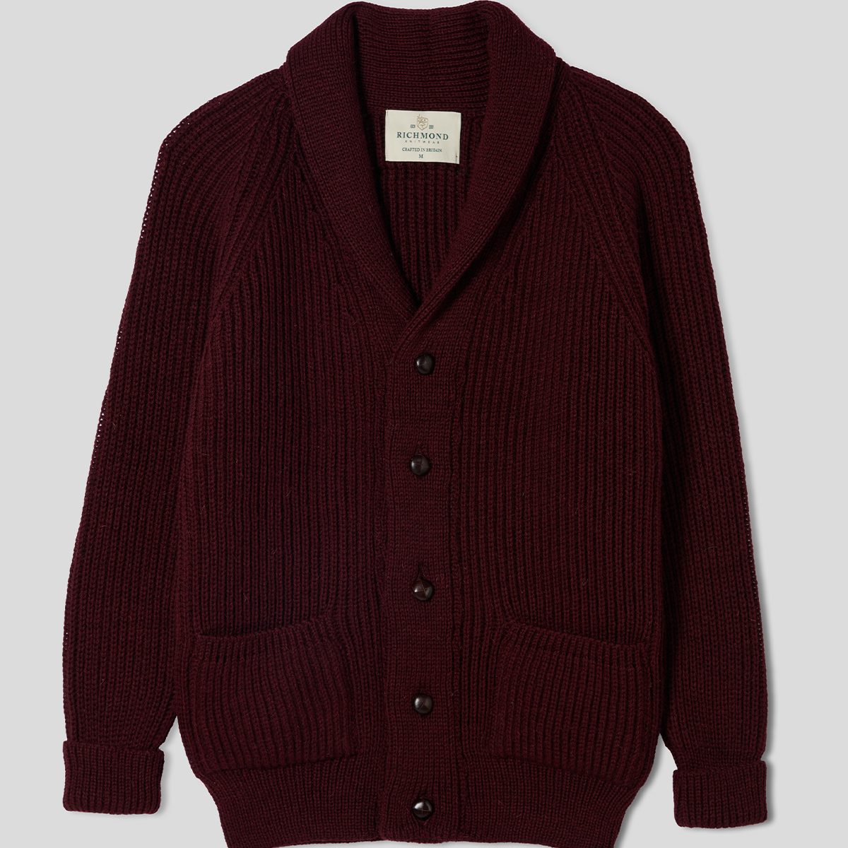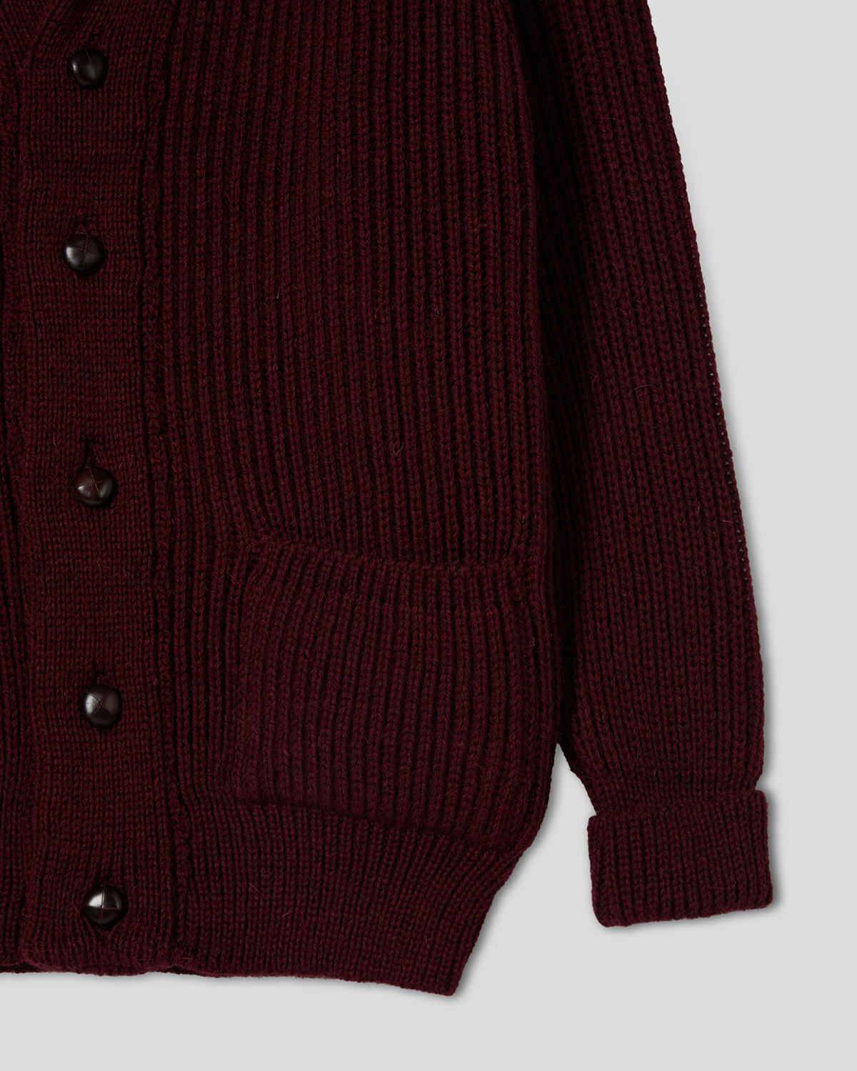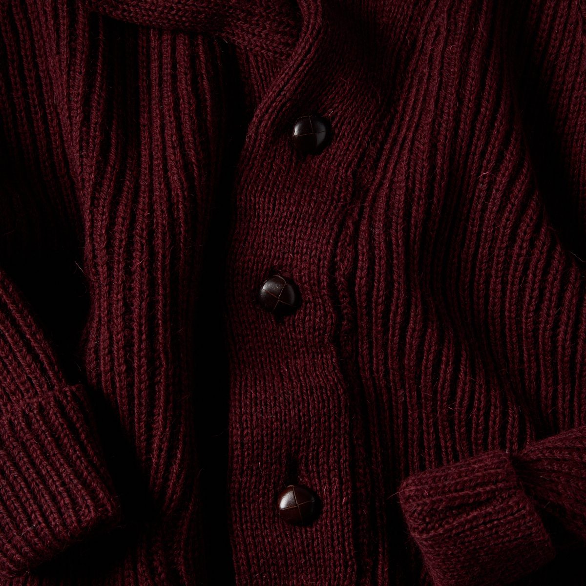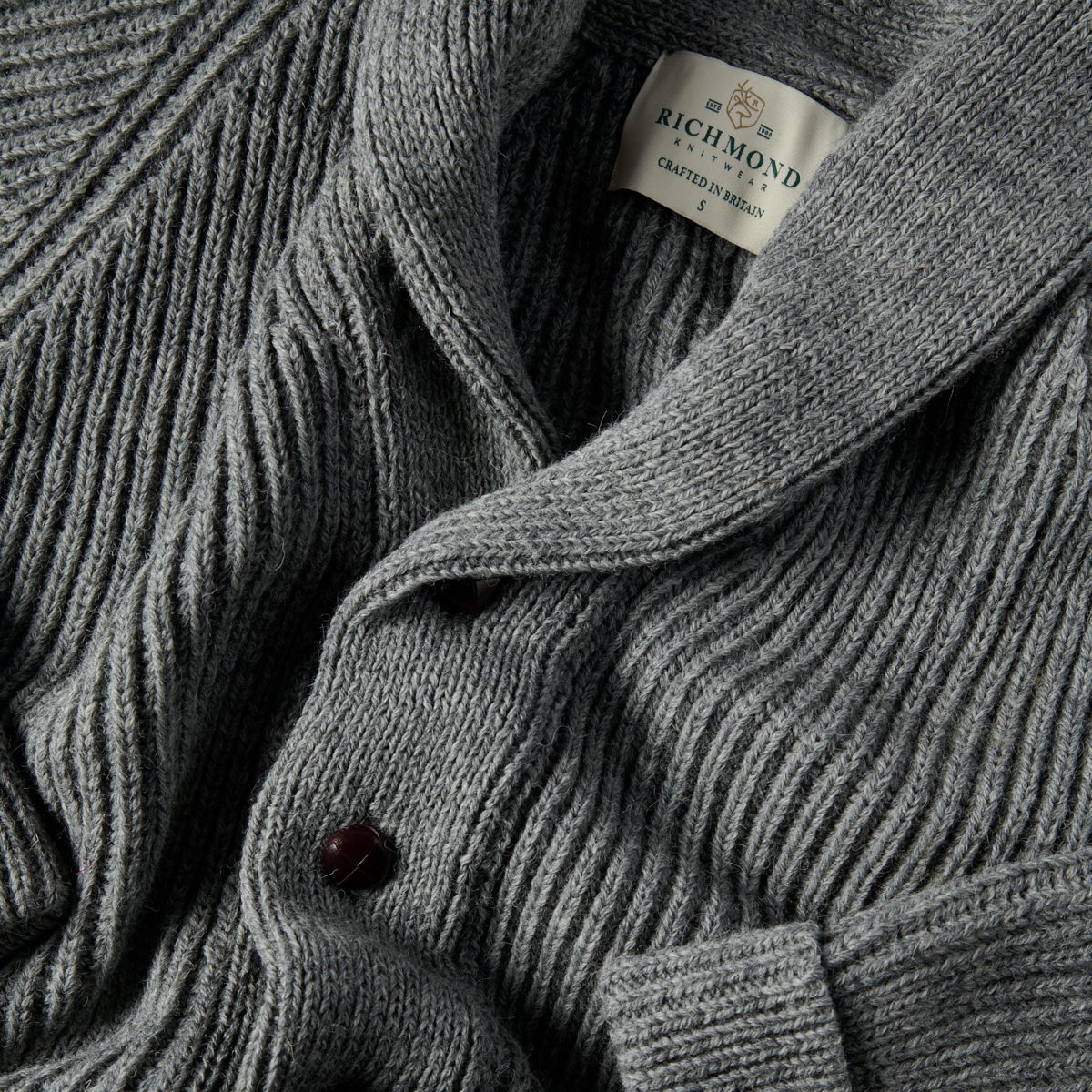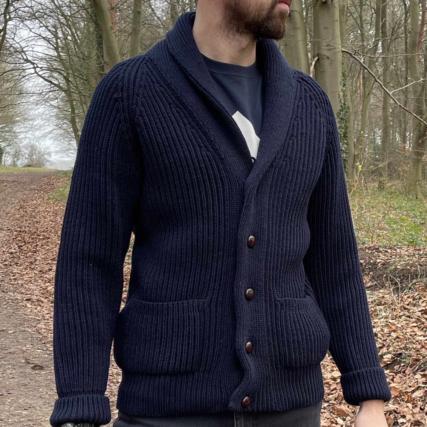 Shawl Collar Cardigan with raglan sleeves in a chunky fisherman rib knit, Richmond by Crystal Knitwear