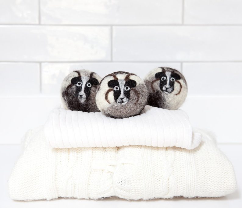 100% wool dryer balls help soften clothes naturally, increasing fluffiness as the dryer tumbles, eliminating the need for fabric softeners or dryer sheets. By Little Beau Sheep