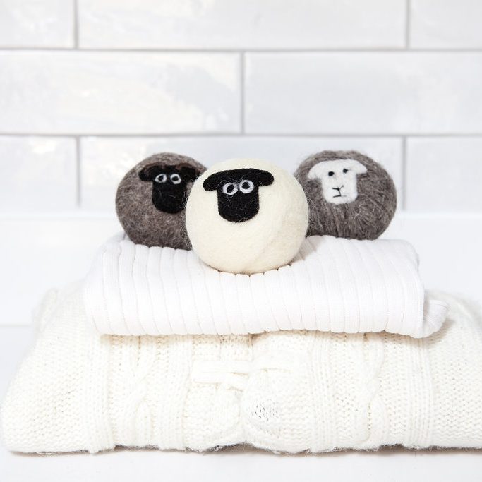 100% wool dryer balls help soften clothes naturally, increasing fluffiness as the dryer tumbles, eliminating the need for fabric softeners or dryer sheets. By Little Beau Sheep