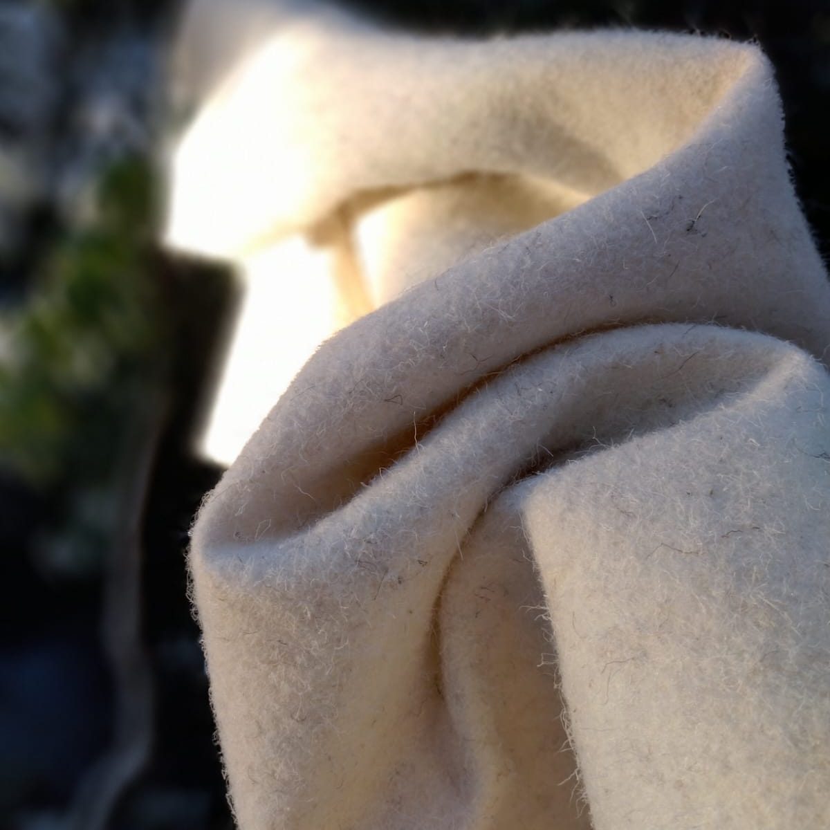 Our Welsh wool felt is a natural, undyed fabric. It is a soft creamy ivory colour with pale brown flecks throughout. Wool felt is a non woven fabric and cut edges do not fray. This makes it an excellent choice for crafting, use around the garden and other projects.