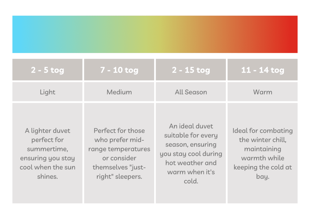 You may be used to purchasing a duvet based on its TOG value. However, this rating is only suitable for synthetic and down fillings and does not give wool and other natural fibres a comparable rating. This is because TOG is calculated on retaining heat only and the natural properties of wool allow it to both insulate and release heat to keep the sleeper at a comfortable temperature.